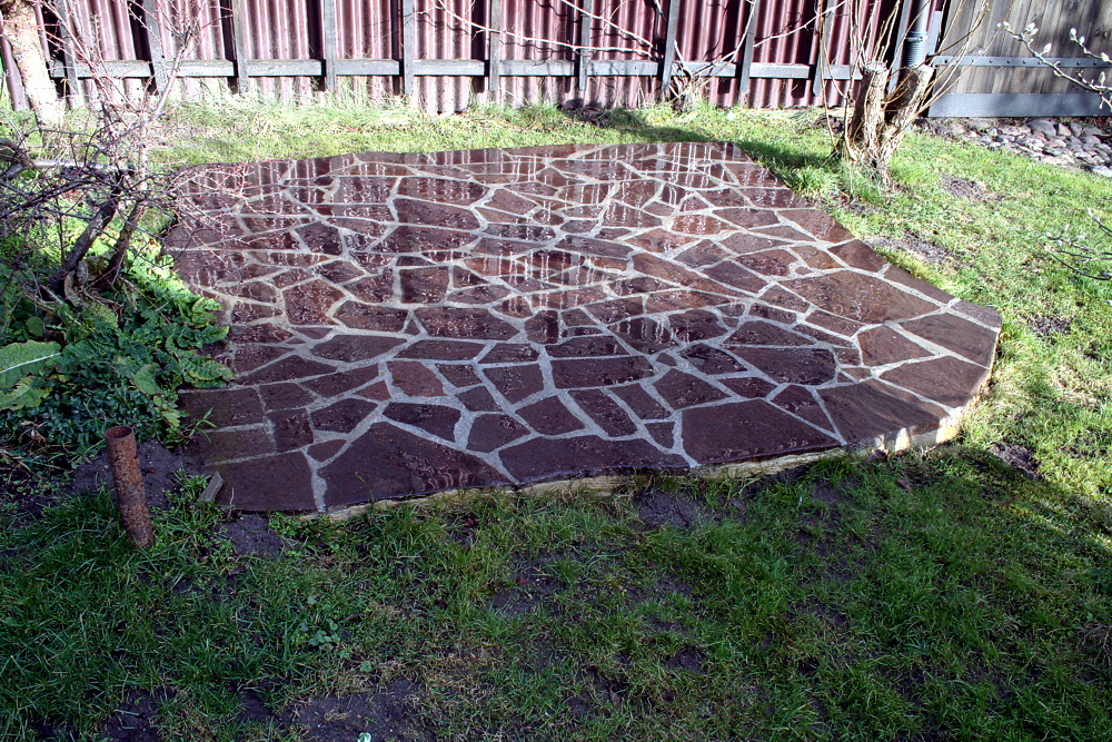 Eine Fläche aus Bruchsteinplatten erstellt.