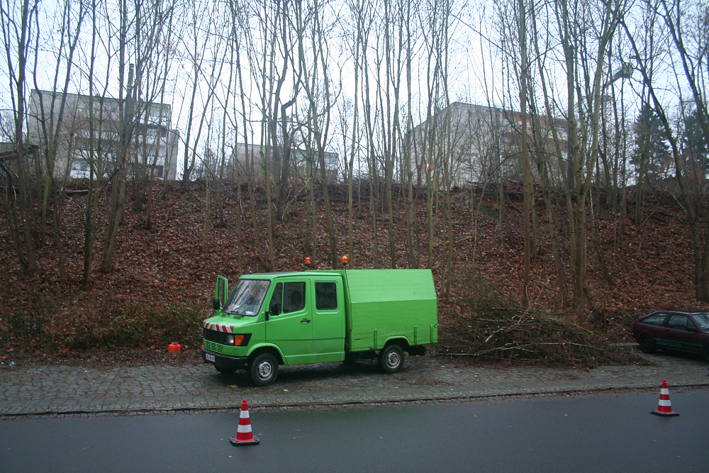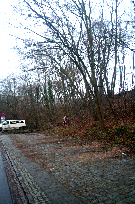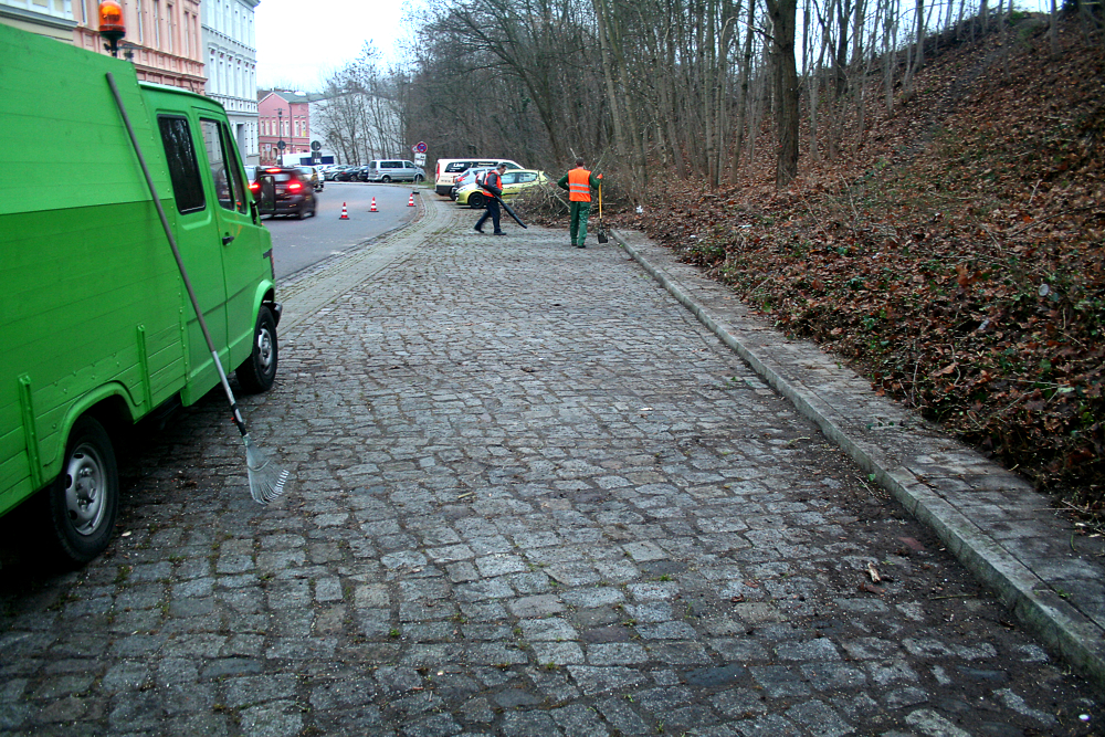 Parkplatz konnte nach der Reinigung sofort wieder benutzt werden. Gleichzeitug wurde der nächste Straßenbereich vorbereitet.