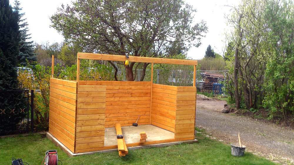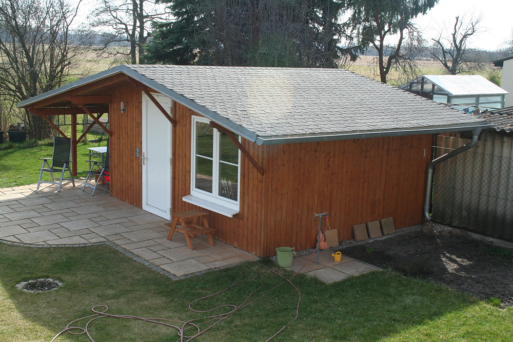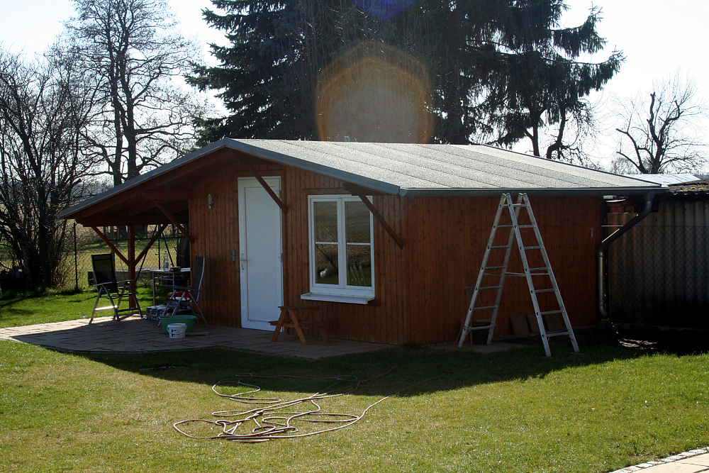 - Zu guter letzt wurde ein Gartenhaus kommpletiert.